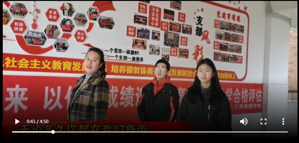 2020级金融工程本科2班彭磊:在练习这首歌的时候我感受到了中国共产党党员的无私奉献,也让我意识到了我们的责任重大。我们仍要把艰苦奋斗、不屈不挠的精神投入到学习工作生活当中。