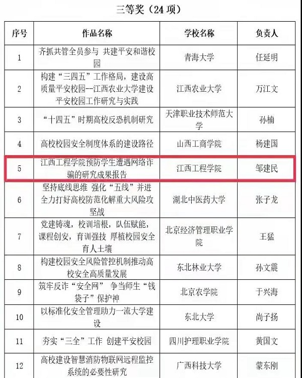 近日,由教育部思想政治工作司和中国高等教育学会共同指导,全国高校思想政治工作网、中国高等教育学会保卫学专业委员会、高校思想政治工作队伍培训研修中心(高等教育出版社)联合举办的“2021年高校平安校园建设优秀成果研讨展示活动”自开展以来,得到了各地各高校和广大教师的积极响应,根据专家对报送作品的遴选审议情况。华亿平台在2021年全国高校平安校园建设优秀成果研讨展示活动中荣获三等奖。