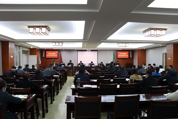(本网讯 何凯 报道)为深入贯彻落实习近平总书记关于“安全生产”的重要论述,夯实平安校园工作根基,保障学校持续稳定和师生安全。3月25日,我校在行政楼三楼会议室召开2022年平安校园创建工作会议。校党委书记、督导专员胡涌主持会议并讲话,学校全体党政领导班子成员、全校正处级以上干部参加了会议。