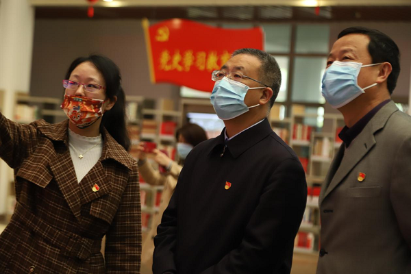 钟世富认真听取我校疫情防控工作情况介绍,深入居家隔离点、快递收置点等,实地察看我校落实各项防控措施情况,详细了解我校防疫物资储备、隔离人员食宿条件等。在参观我校新时代文明实践中心、“首批全国党建工作样板支部”——抱石艺术学院党总支后,钟世富对我校党建工作的特色做法和成效予以充分肯定。