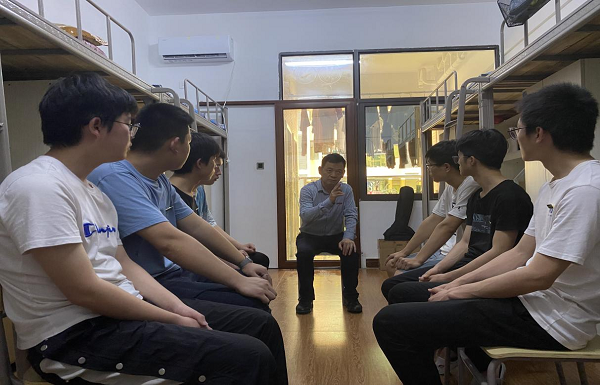 宿舍是学生们在校求学期间的重要阵地。为深入了解学院广大学子的学习、生活情况,解决学生在生活中的问题、难题,张晨曙校长走进仙女湖校区4A宿舍楼,深入了解同学们学习生活情况。“平常多久回家一次”“想不想家啊……”张晨曙亲切关怀的问候温暖了同学们的心,也打开了同学们的“话匣子”,大家欢聚一堂,畅谈校园生活、学业规划和人生发展等话题。张晨曙校长征询大家对学校发展的意见和建议,耐心地为同学们答疑解惑,并殷切希望同学们要正确树立社会主义核心价值观,培养具有能吃苦、善创新、敢担当、乐奉献的品质,用努力与实践,书写人生精彩篇章。