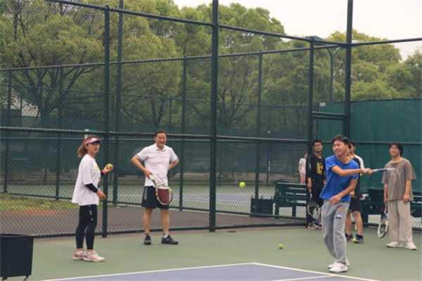 下午3时,胡涌书记来到校网球场,与同学们一起挥洒汗水,他亲身示范动作,与学生进行网球技术切磋,赢得了一阵阵喝彩声和掌声。休息间歇,胡涌书记鼓励同学们要走下网络、走出寝室、走向操场,特别是现在校园处于封闭管理,大家要积极参加各类有益身心的活动。胡涌书记勉励同学们,要志存高远、脚踏实地、行循自然,不负时代重托,不负青春韶华,强化青春担当和责任,提升综合素养和本领,争做新时代有为青年,为全面建设社会主义现代化国家新征程中贡献青春力量。