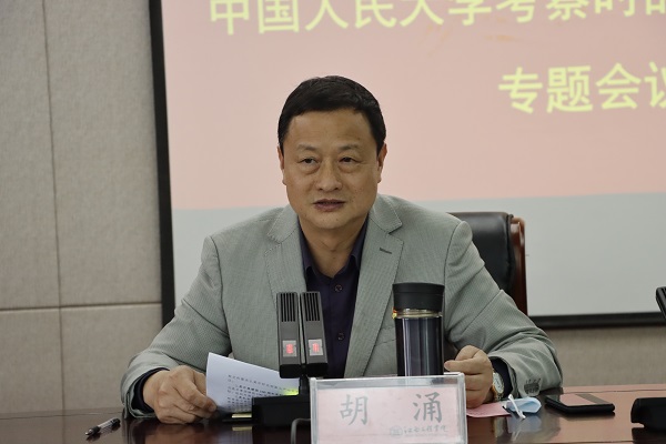 (本网讯 刘永东 报道)4月29日下午,学校党委在行政楼三楼会议室召开专题会议,深入学习研讨习近平总书记在中国人民大学考察时重要讲话精神。校党委书记、督导专员胡涌主持会议并讲话,校领导冯赟、彭卫东、沈良、黄海军、鲍步云、乐俊杰、邹建民出席会议,各党群部门、各职能部门、各教学院(部)正处级以上干部参加学习会。