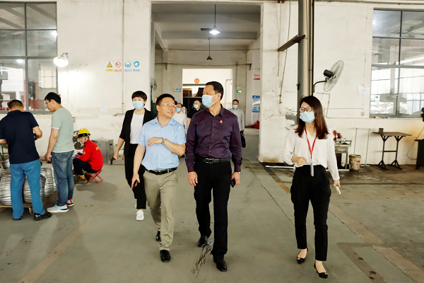 胡涌书记一行在企业负责人的陪同下参观了企业生产车间,详细了解企业的生产、经营、产品研发、企业文化、党建、人才需求等方面的情况。