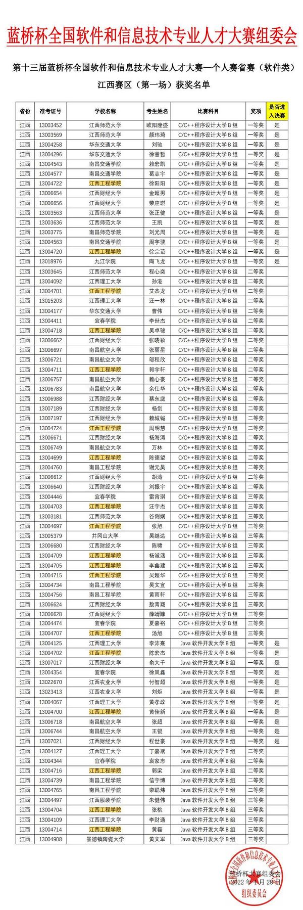 今年华亿平台区块链学院共有29名选手参加了C/C++程序设计、Java软件开发项目比赛。经过剧烈竞争,学院学子在大赛中喜获佳绩,共有18名学生获奖,其中一等奖4人,二等奖6人,三等奖人8人。具体获奖名单如下:C/C++程序设计B组一等奖徐阳阳、徐宗苡;二等奖艾杰龙、吴卓骏、郭宇轩、周明慧、陈德望;三等奖汪宇杰、张旭、杨诚涵、李鑫建、吴超华、汤旭;Java程序设计B组一等奖陈宏杰、黄佳新;二等奖郭梁;三等奖张桃、黄磊。