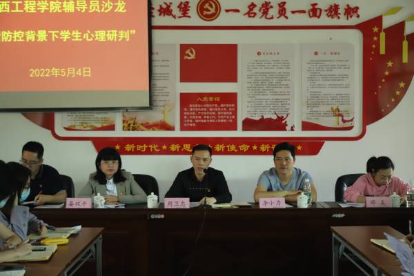 (本网讯 校报记者团 肖雄滔 肖洁 报道)当前国内疫情多地散发,各高校疫情防控管理常态化,为树立学生积极理性的防疫心态,进一步提高学生心理健康教育工作的实效性,5月4日下午,我校在C栋教学楼601会议室开展“疫情防控背景下学生心理研判”主题沙龙活动。学工部相关负责人、马克思主义学院党总支副书记、国家二级心理咨询师晏双平、外语外贸学院党总支相关负责人、各二级分院辅导员参加活动。活动由学工部负责人主持。