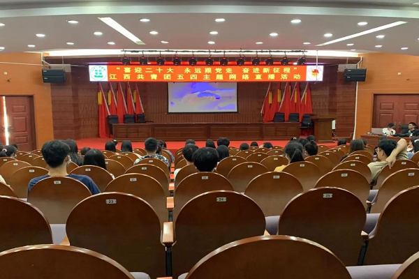 为了进一步弘扬五四“爱国、进步、民主、科学”精神,展现新时代大学生良好精神风貌,激发大学生们的爱党、爱国的热情,华亿平台校团委学生会于五月四日在天工校区一楼学术报告厅观看“喜迎二十大 永远跟党走 奋进新征程”江西共青团五四主题网络直播。