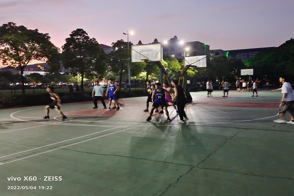 篮球赛于2022年5月4日下午6点30分在天工校区篮球场拉开序幕,随着裁判员的哨声,球赛正式开始。在春意盎然的季节里,教师们的激情在此燃烧。场上气氛顿时活跃起来。一个个敏捷灵动的身影,一声声激动高昂的呐喊,每一次进球时胜利地微笑,每一次失利时沮丧地叹息,漂亮地抢断,完美的过人,三分线外的远投、一次次篮下扑救,构成了一道道亮丽的风景线。