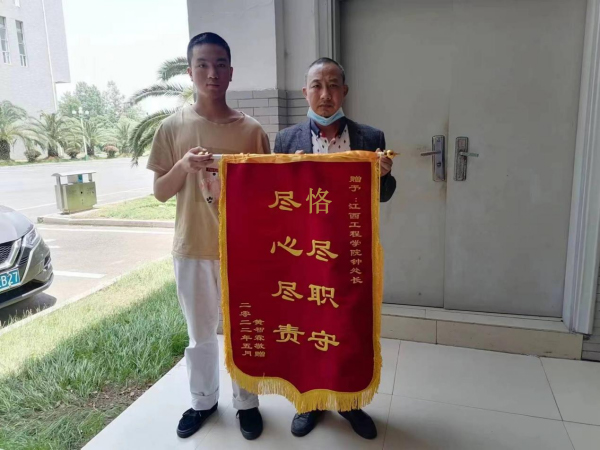 5月16日上午,学生黄智霖怀着感激之情,拿着绣有“尽心尽责,恪尽职守”八个金色大字的锦旗来到仙女湖校区门卫室,将锦旗交给钟春根时,说了一番感激不尽的心里话。但钟春根同志对学生说:“保护学生财产安全,是我们应尽职责,不需要感谢。我只希望你在学校也力所能及地帮助一些遇到困难的同学。” 黄智霖认真地听着,“嗯、嗯”的点头,激动得说不出话来。