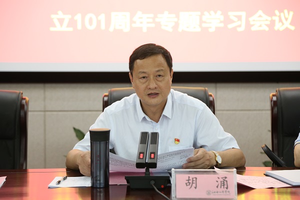 (本网讯 刘永东 报道)6月17日下午,校党委在行政楼三楼会议室召开党委理论学习中心组学习(扩大)会暨庆祝中国共产党成立101周年专题学习会议。校党委书记、督导专员胡涌主持会议并讲话,校领导张晨曙、冯赟、黄志良、沈良、黄海军、乐俊杰、陶小兵、邹建民出席会议,全校副处级以上干部参加会议。