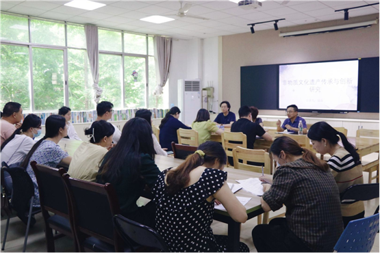 6月15日下午在我院艺术楼205会议室开展“非物质文化遗产传承与创新研究”主题沙龙活动,由江西科技师范大学传统工艺研究院院长寇焱教授主讲,江西省美术家协会副主席曹丽云、江西科技师范大学美术学院工艺美术系副主任黄勋莅临指导,我院院长余旭、副院长张培、公共教学部副主任苗珍廷以及教师代表出席活动。