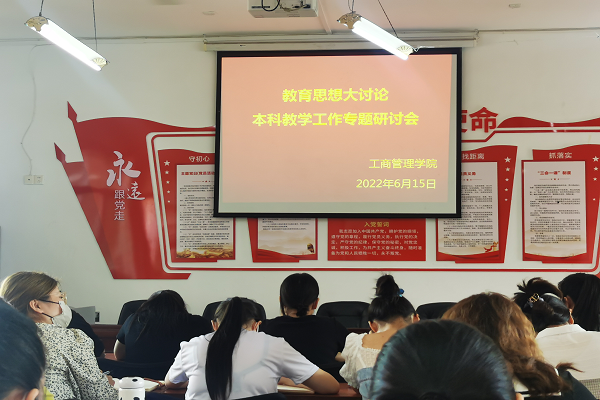 6月15日,工商管理学院在理工楼C401开展教育思想大讨论,会议围绕如何以优异的成绩迎接学校本科教学工作合格评估进行专题研讨。学院院长燕春友、学院书记何丽、副院长邵丽盛、副书记彭燕及任课教师参加了会议。本次会议由院长燕春友主持。