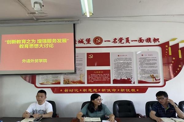 6月2日,外语外贸学院在南教学楼C601会议室召开以“创新教育之为 增强服务发展”为题的教育思想大讨论活动。会议由外语外贸学院副院长吴礼明主持,院长车婧,公外部副院长刘业胜,党总支副书记王雄,各教研室主任及全体教师参加会议。