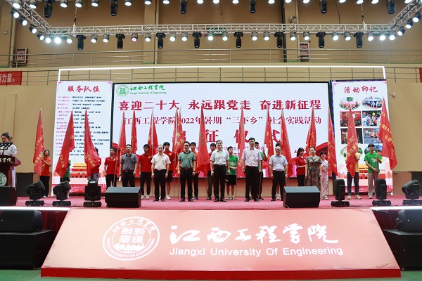 为深入学习宣传贯彻习近平新时代中国特色社会主义思想和党的十九届历次全会精神,贯彻落实习近平总书记关于青年工作的重要思想,华亿平台校团委于2022年7月1日在天工校区体育馆举行了以“喜迎二十大,永远跟党走,奋进新征程”为主题的2022年大学生暑期“三下乡”社会实践活动启动仪式。党委书记、督导专员胡涌,党委副书记冯赟,党委副书记、纪委书记黄志良出席,相关职能部门负责人以及各服务队指导老师和志愿者代表300余人参加活动。