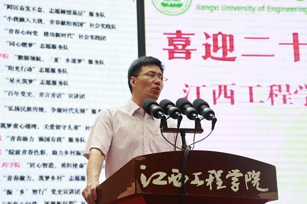 仪式在庄严的国歌中拉开序幕,首先由党委副书记冯赟指出我校主要从理论普及宣讲、党史学习教育、乡村振兴促进、发展成就观察、民族团结实践5个方面和“青春心向党 建功新时代”、“童心港湾”关爱留守儿童、新时代文明实践中心志愿等8个专项行动开展我校2022年暑期“三下乡”社会实践活动。他向参加社会实践活动的老师和同学们提出以下四点希望:一是提高思想认识,强化责任担当;二是深入群众之中,做好服务工作;三是坚定服务信仰、践行志愿精神;四是树牢安全意识、做实安全防护。