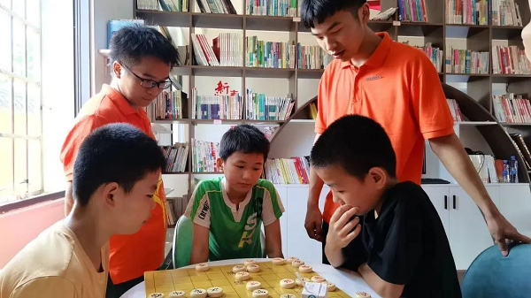 大数据与计算机学院走进石山村爱心儿童书屋,帮忙整理书籍,并为来到书屋的孩子们进行课业辅导,并陪孩子们进行猜古诗、猜谜语、成语接龙等游戏。