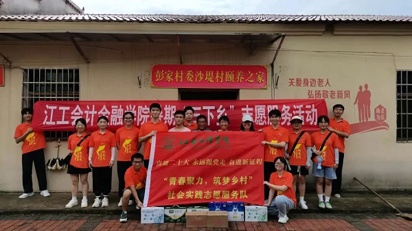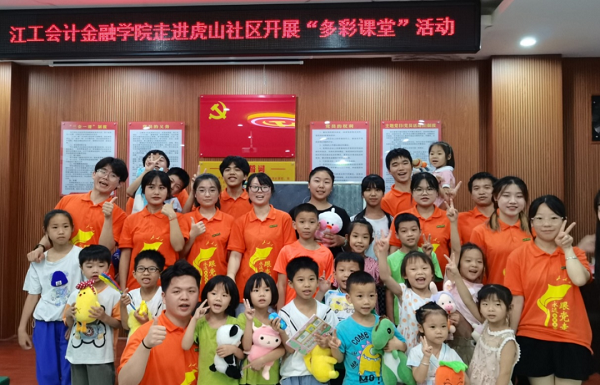 会计金融学院“青春聚力,筑梦乡村”社会实践志愿服务队第一次活动走进罗坊镇彭家村委会给当地的小孩开展了“推普筑梦乡村,温暖送教下乡”为主题的推广普通话暑期社会实践活动,并开设折纸、手势舞、下象棋等语言文化“第二课堂”;第二次活动走进虎山社区,为孩子们开展了“多彩课堂”活动,以及开展防溺水宣传讲座,带领小朋友体验相关急救方法,培养小朋友们的应变能力。