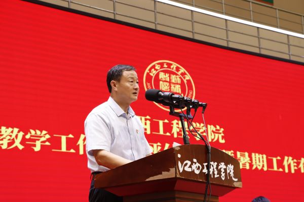(本网讯 刘永东 报道)凌绝顶笑迎晨曦如歌岁月应无悔,砥利剑梦别星辰折桂蟾宫当有时。7月12日,我校在江工体育馆召开本学期末最为重要的一次会议——学校本科教学工作合格评估推进暨暑期工作布置会。学校董事长杨名权,党委书记、督导专员胡涌,党委副书记、校长张晨曙出席会议并讲话,全体教师参加大会。大会由党委委员、副校长刘德华主持。