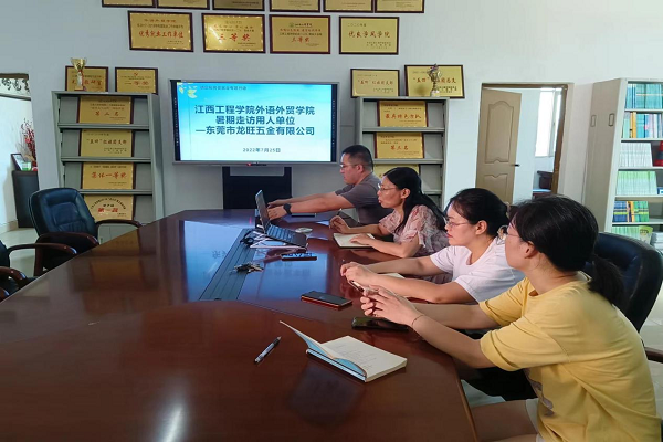 为贯彻落实教育部访企拓岗促就业专项行动要求,积极开拓就业渠道,增进学校与用人单位、校友之间的沟通联系,进一步落实学校“访企拓岗促就业”专项行动。2022年7月20日—7月26日,外语外贸学院采用线上线下相结合、“请进来”“走出去”同发力的形式,深入企业为毕业生开拓就业新渠道。校党委委员、副校长沈良带队,外语外贸学院党总支书记、院长车婧、外语外贸学院党总支副书记王雄、外语外贸学院副院长吴礼明等老师陪同前往江西赛维LDK太阳能高科技有限公司等五家公司实地走访或进行“云”走访调研,开展访企拓岗促就业活动,共商合作优化人才培养体系。