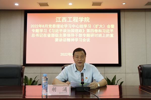 (本网讯 何凯 报道)8月17日,我校在行政楼三楼会议室召开了校党委理论学习中心组学习(扩大)会议,专题学习《习近平谈治国理政》第四卷和习近平总书记在省部级主要领导干部“学习习近平总书记重要讲话精神,迎接党的二十大”专题研讨班上的重要讲话精神。校党委书记、督导专员胡涌主持会议并讲话。校董事长杨名权列席,校党政班子成员、副处级以上干部参加会议。