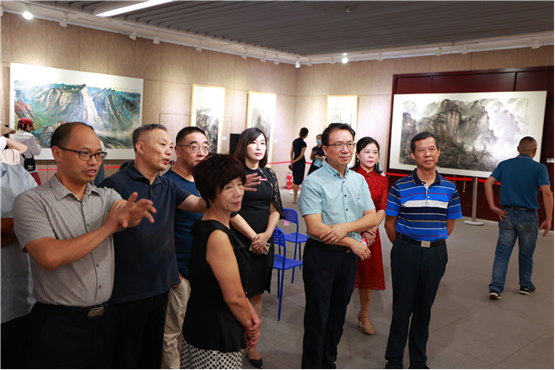 2022年8月26日由新余市文化广电旅游局、新余市文学艺术联合会、广州市国画协会及高剑父纪念馆主办的“一墨倾城——朱永成山水画展”在江西省新余市美术馆开展。院长余旭、以及我院部分教师参加此次画展。