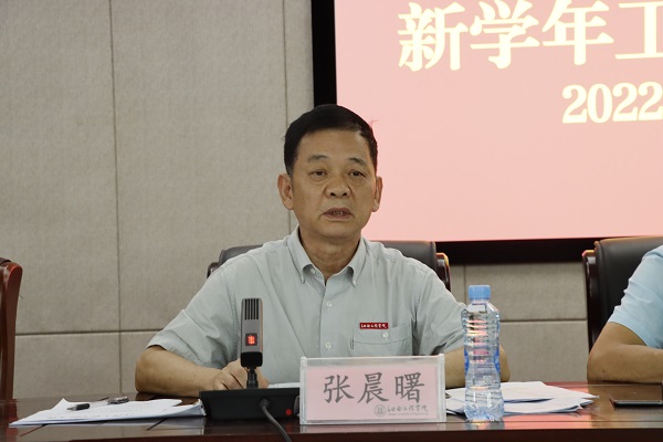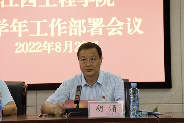 (本网讯 于永清 报道)8月28日下午,我校在天工校区行政楼三楼召开新学年工作部署大会。会议强调,要认真学习贯彻习近平总书记关于高等教育的重要论述,以及《习近平谈治国理政》第四卷和习近平总书记在省部级主要领导干部“学习习近平总书记重要讲话精神,迎接党的二十大”专题研讨班上的重要讲话精神,深刻领会省委书记易炼红在2022年全省高校党委书记校长暑期研讨班会议讲话精神,全校上下以目标为导向,争分夺秒动起来,撸起袖子干起来,推动新学年教育工作高质量发展,以优异的成绩迎接党的二十大胜利召开。