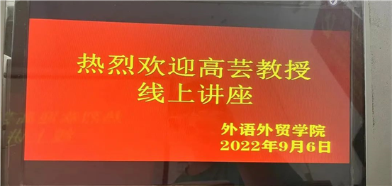 9月6日上午十点,外语外贸学院高芸教授在C601线上举行了题为“语言美学功能与绝对不可译性”的讲座,旨在帮助外语外贸学院学生提升文学素养,增强对语言的理解能力。
