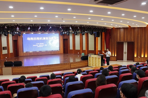 (本网讯 何凯 报道)为全面落实《关于深化新时代学校思想政治理论课改革创新的若干意见》,充分发挥领导干部在高校思政课建设中的示范引领作用。9月16日下午,伴随着熟悉的上课铃声,一堂由校党委书记、督导专员胡涌讲授的“形势与政策”课在天工校区学术报告厅四楼开讲。胡涌书记以“乌克兰危机演变及影响”为题,为同学们带来了一堂精彩纷呈的《形势与政策》课。