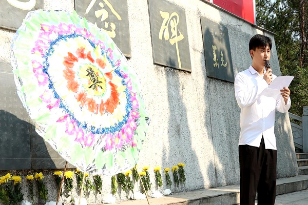 仰天高岗苍苍,袁水淌淌,烈士百代流芳。历史不是尘封的记忆,也不是埋没于故纸堆的故事,而是前辈先烈留给我们的珍贵遗产。何应政同学作为代表发言,歌颂先烈们的丰功伟绩。