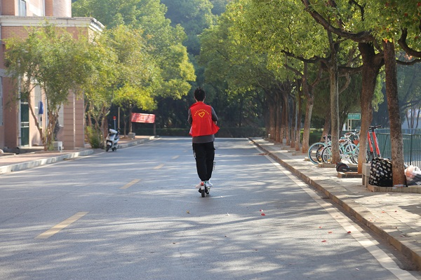“封闭管理的校园是安静的,同时也是干净的。在教学楼、在宿舍区、在食堂、在校园主干道,保持和往日一样的干净,甚至连黄昏静谧的湖面,也成了一幅风景画。这里有后勤保洁阿姨们的辛勤汗水,谢谢你们!”学校团学干部杨定海有感而发。