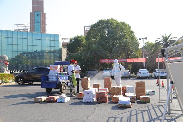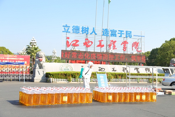 凌晨3点,在仙女湖校区,彻夜无眠,灯火通明。10余名后勤人员佩戴着口罩,正整齐麻利地将各类新鲜蔬菜装箱打包,经过六面消杀,在物品绝对安全卫生的条件下,他们将从南昌、长沙运来的珍贵物资运抵学校天工校区和仙女湖校区食堂。“民以食为天,让师生在静态管理中能吃饱吃好,是我作为一名后勤管理人员的责任,我当全力以赴!”校党委委员、校长助理陶小兵表示。为保障广大师生餐饮有序,学校后勤处领导轮流值班,师生领餐主动排队保持一米间距。全校师生自觉自律,保证校园秩序正常有序运转。据悉,学校后勤管理人员督促食堂档口和餐饮店面做好场地消杀和卫生安全管理。保持通风换气,服务人员工作时间佩戴口罩;监督原材料进货查验登记,保证来源可追溯。同时做好防疫物资储备。对帐篷、额温枪、防护服、口罩、消毒剂、洗手液、喷雾器等防疫物资做好入库、出库台账,专人管理,及时保障防疫需求。