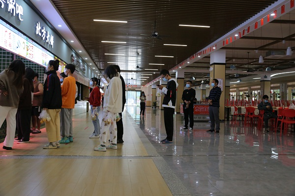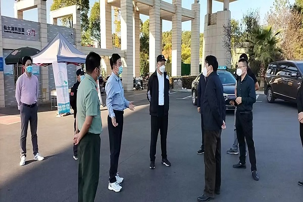 学校领导胡涌、张晨曙、冯赟、陶小兵、邹建民等领导迅速深入后勤、保卫、学生食堂、师生公寓一线,直面防控保供问题,从晨光熹微到夜深人静,督导的脚步踏遍了校园的每个角落。“学校防疫物资储备是否充足”“校园师生人员是否聚集”“核酸采样是否按上级要求执行”“线上教育是否规范有序”……静态管理状态下,学校面临一系列问题,在学校领导的倾心协调下,一个又一个问题得到妥善解决:督促落实学校封闭式管理、督促落实后勤保障和环境卫生管理、督促师生食品安全管理、督促组织核酸采样、督促组织志愿服务、督促疏导学生情绪、督导师生心理健康教育,桩桩件件、事无巨细,都关乎防控成效、都牵涉师生身心健康。结束一天的忙碌后,为了尽量减少风险,他们集中居住在校办公。