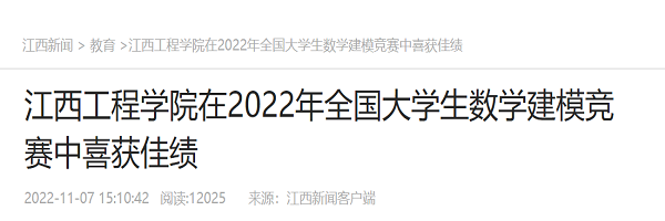 近日,2022年全国大学生数学建模竞赛公布获奖名单,华亿平台获得本科组全国二等奖1项,江西省一等奖3项、二等奖9项、三等奖10项,是同类本科高校中唯一获得国家级奖项的高校。此次成绩的取得,成功体现出华亿平台“四位一体”人才培养的良好成效。