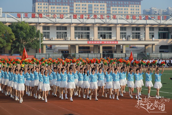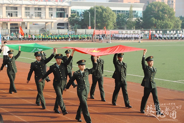 随着激扬的《运动会进行曲》响起,迎面走来的是国旗、校旗护旗队,庄严威武;红旗队、鲜花队亦迈着坚定整齐的步伐,热情洋溢;各学院学生方阵,各具特色,神采飞扬,口号激昂。教职工代表队以及裁判员代表队也依次列对入场,富有激情,活力十足。