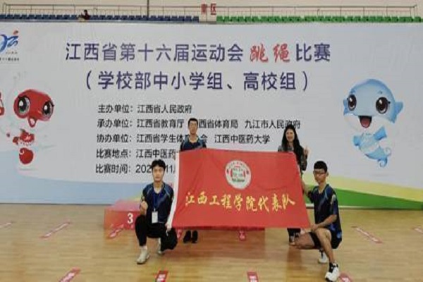 11月9日至10日,江西省第十六届运动会跳绳比赛在江西中医药大学体育馆举行。本次比赛共有大中小学46支队伍,775名运动员参赛。我校三名学生在军事体育教学部副主任陈世武领队,张文斌主任、钟小芳老师为教练的带领下参加了此次比赛,收获1金2银1铜的好成绩,其中土木工程学院吴洪刚获得1金,区块链学院梁搏夺得2银,教育学院刘子杰获得1银1铜。