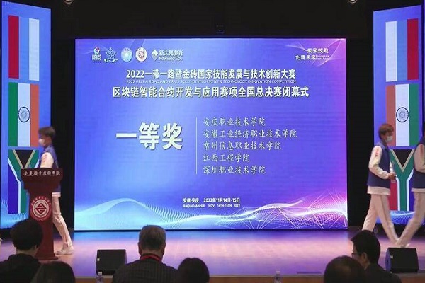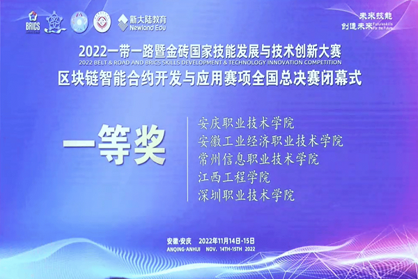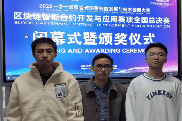 2022年11月14-15日,来自全国21个省市自治区,包括江西师范大学、安徽理工大学、新疆大学、内蒙古科技大学、深圳职业技术学院等70余所院校参加了2022一带一路暨金砖国家技能发展与技术创新大赛之区块链智能合约开发与应用比赛。经过层层选拔共有46支队伍脱颖而出,进入全国决赛。从决赛上获悉,我校区块链学院学生徐宗苡、万远茨组队经过多轮选拔赛,进入全国总决赛,获得全国一等奖。