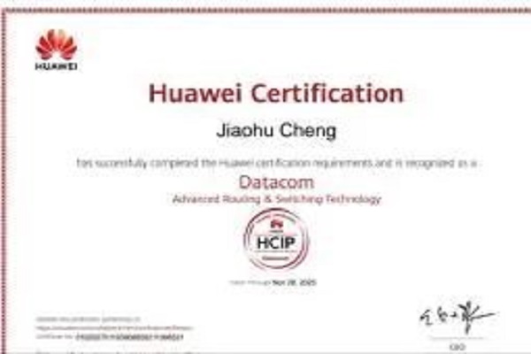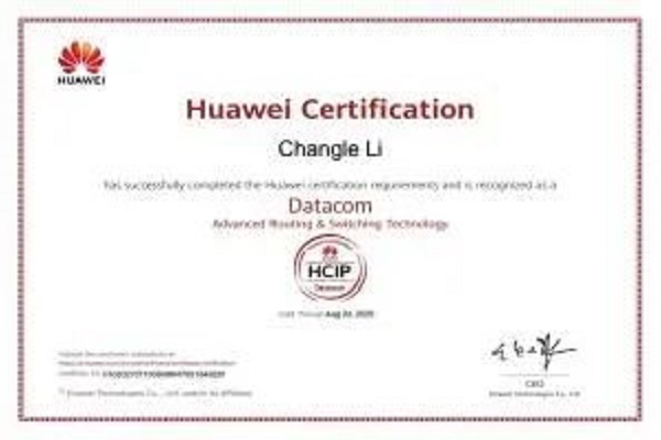 华为HCIP-Datacom认证:培训和认证在数据通信领域具备独立进行中小型网络规划设计、部署和运维的能力的高级工程师。华为HCIP-Datacom是华为公司推出的华为认证ICT高级工程师,是华为认证体系的中级认证,在国内有很高的知名度和认可度,在一线城市月工资可以达到8K以上。