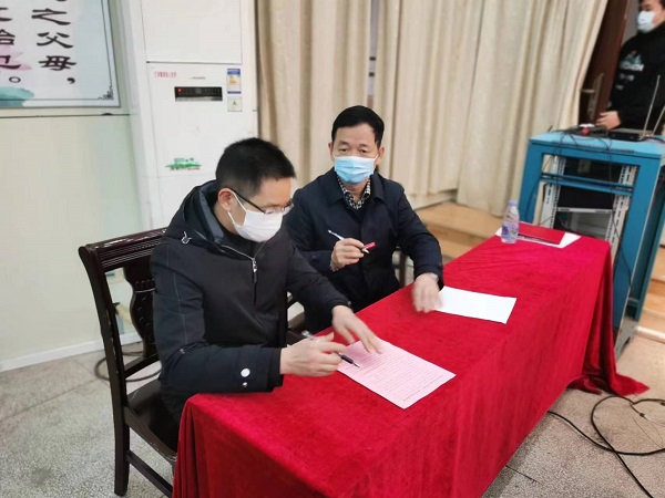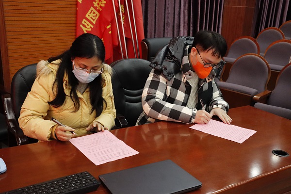 杨显阳博士、张晨曙校长同教学院代表签订责任状