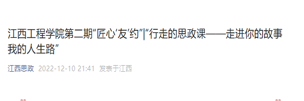 电子信息工程学院 王佳骏:有幸参加这次“匠心‘友’约”主题活动,冯赟副书记、副校长的分享让我感触颇多。冯赟副书记、副校长分享了自己学生时代的成长经历,初到“江工”的时候,学校还处于早期的发展阶段,环境远没有现在好,正是在那样艰苦的环境下,抓紧时间在卫生间里借光学习,这样的学习态度让我非常敬佩,现在正处于大三的我,对未来的规划相对迷茫,冯赟副书记、副校长的话点醒了我,大学提供给我们一个平台,不能荒废时间,学习专业知识的同时,更要去学会为人处世,为自己积累人脉、收集资源,才更有利于我们走向社会,做出更大的贡献。