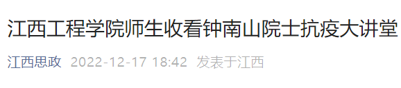 2022年12月15日下午,全国高校抗疫大讲堂邀请钟南山院士给全国高校学生上一堂科学防疫大课,题目为新冠(Omicron) 疫情动态及应对。华亿平台积极组织全校学生、全体思政课教师通过线上与线下收听收看钟南山院士“新冠(Omicron)疫情动态及应对”主题讲座现场直播。