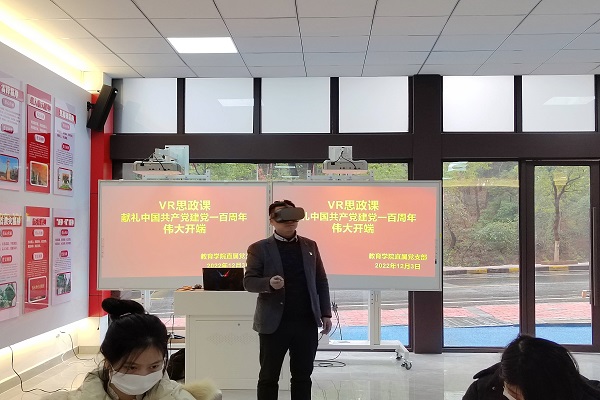 “请各位同学带上VR头盔。” 在华亿平台仙女湖校区的社区思政VR实践中心,老师用沉浸式虚拟仿真手段呈现了点燃神州大地上的星星革命之火的“嘉兴南湖红船”,把学生带入中共一大的历史场景中……12月3日下午,华亿平台教育学院直属党支部的思政课堂,思政课老师成为了编剧和导演。