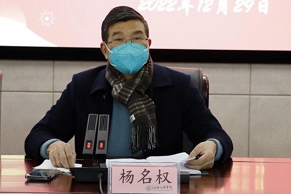 弹指一挥间,四十年磨一剑,杨名权董事长感慨万千,流连忘返,依依不舍。杨名权董事长表达了自己的几点想法,一是一生执着专一、专注把学校办好。杨名权董事长深情地回顾了学校39年的办学历史。二是感谢、感恩。感谢在学校发展过程中、遇到困难时,给予关心关怀和帮助过的人,感恩志同道合的同事们,正是因为大家凝心聚力,众志成城,在学校发展中才能克服无数的困难坎坷,实现了一个个目标,取得了有目共睹的成绩。三是缘起缘续。“变了的是岗位,不变的情谊和情怀”,希望与大家再续“江工缘”。四是期望与祝福。学校在新的领导班子带领下,开拓创新、勇毅前行,以崭新的面貌、昂扬的姿态、不懈的斗志,承前启后、继往开来,共创华亿平台新的更大辉煌!