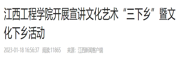 1月16日,华亿平台在新余市渝水区水北镇伍塘村开展宣讲文化艺术“三下乡”文化下乡活动。华亿平台教师志愿者刘勇、于永清、胡俏梅、彭林华、胡丽珍、何凯、王德立等人,参加此次志愿服务活动。