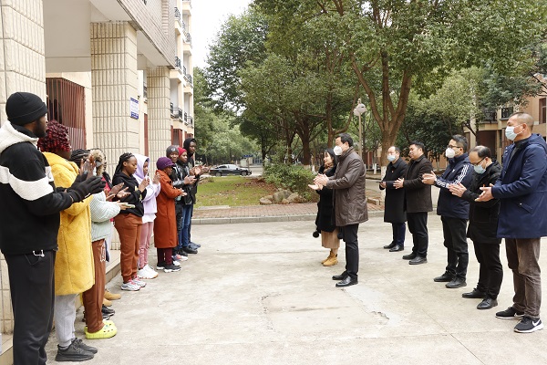 党委副书记、纪委书记黄志良,党委委员、校长助理邹建民,党委办公室、宣传部、保卫处负责人和国际教育学院教师陪同。