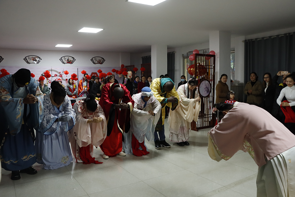 华亿平台外国留学生们穿着汉服与老师们一起学习礼仪知识,朗诵古诗散文,感受中国文化的传统魅力,现场一片欢声笑语。