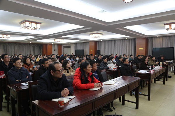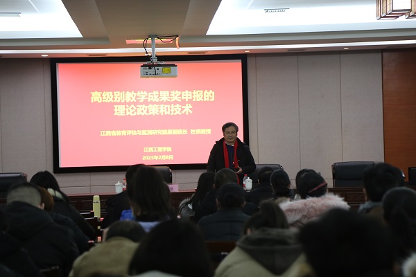 为进一步做好我校教学成果奖申报工作,提高教学成果奖申报质量和成功率,2月8日下午,我校邀请了江西省教育评估与监测研究院原副院长杜侦教授,在天工校区行政楼三楼会议室举办了《高级别教学成果奖申报的理论政策与技术》专题讲座。学校党委委员、副校长刘德华教授,各教学院(部)院长(主任)、教学成果奖拟申报团队成员和相关职能部门负责人等共计120人参加讲座。讲座由刘德华主持。