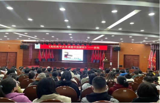 为加强高校教师课题申报能力,开阔学科视野,拓宽经验交流,学校,2月9日上午9:00我院院长余旭在学术报告厅一楼开展了《高校教学改革课题申报解析》专题讲学,讲学由教务处安文俊博士主持,全校教师代表听取了讲学。