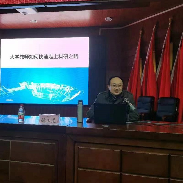 作为一名有着丰富教学经验和丰硕科研成果的优秀教师,鲍玉昆结合自己多年的教学、科研经历,分别从“什么是大学、高校教师为什么做科研、科研方向的确立、科研资料的收集与查找”等4个方面,与全体教师分享了自己在科研之路的成长、收获和经验。