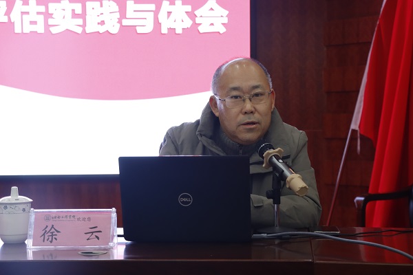 徐云教授从评估专家进校考察基本情况、专业与课程建设以及专家访谈三个方面进行基本介绍。随后通过对评估指标体系进行详细解读,讲解了评估阶段具体过程,包括深度访谈、听课、走访教学单位和有关职能部门、到用人单位调研、召开有关的座谈会;考察实验室和实习实训基地、图书馆、体育场馆、网络中心等教学场所与设施;调阅试卷、毕业论文(设计)、课程设计等材料;查阅评估有关支撑材料;特别强调第一天上午的集体考察非常重要。促使广大教职员工加深了评估流程的认识。在强调重要性的过程中也给予我们极大的鼓励。