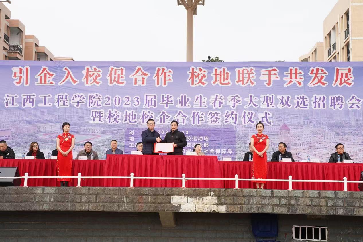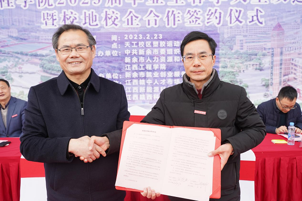 签约仪式上,我校与宁波市鄞州区人社局、新余市人社局,分别签订了校地战略合作协议,与江西省赣锋锂业股份有限公司、江西亿铂电子科技有限公司等一批行业龙头企业,签订了校企合作协议,扎实推进了校地、校企合作,开创了我校产教融合、协同育人的新局面。